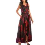 イグナイトイブニングス レディース ワンピース トップス Floral Print Jacquard Mikado Sleeveless Hi-Low Gown Black/Red