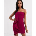 ベスパー レディース ワンピース トップス Vesper bandeau mini dress with ruffle detail in wine Wine