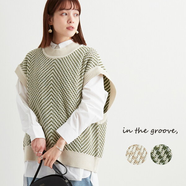 【スーパーセール半額 目玉商品】■へリンボーン バックスリット ベスト in the groove, インザグルーヴ レディース トップス ハイネック 人気 大人 トレンド フリーサイズ ゆったり おしゃれ 大きいサイズ ニットベスト 春