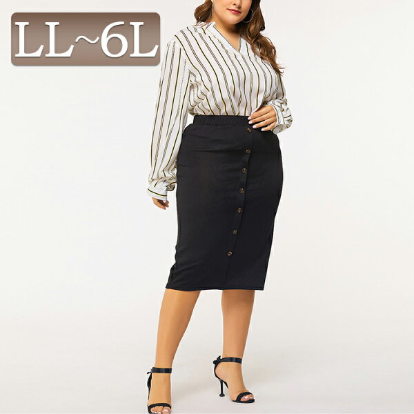 大きいサイズレディース スカート タイトスカート ボトムス ボタン使いタイトスカート フィット タイト 華奢見せ お洒落 着回し オシャレ 女子 細見せ 流行 トレンド体型カバー 着痩せ 無地 夏新作 秋新作 春服 秋服 LL 2L 3L 4L 5L 6L ブラック 黒 韓国ファッション