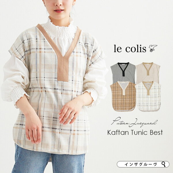 【WEB限定】【SALE】■柄 ジャガード カフタン チュニック ベストチュニック 秋 冬 春 大人可愛い ゆったり 体型カバー カジュアル ナチュラル 大人 トレンド ジャガードニット ニットベスト le colis ルコリ